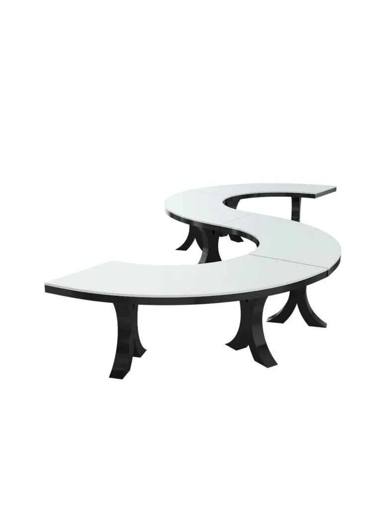 white serpentine table
